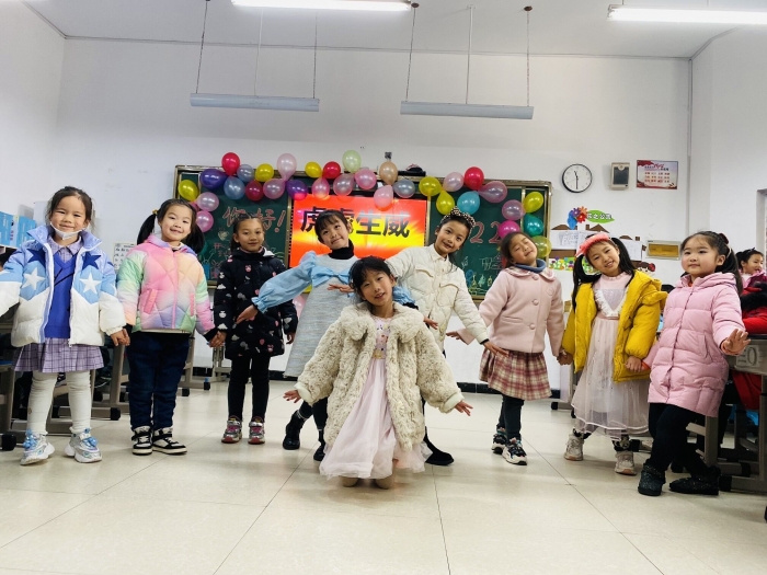 12月29日,高新天问小学一年级全体同学采用贴对联、做游戏、吃蛋糕的方式来迎接新年的到来。
