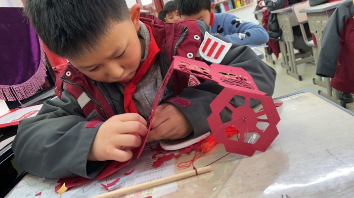 同时,结合美术、劳动课程进行手工灯笼制作,孩子们在制作的过程中不仅学习中华传统文化,又开发了思维能力和想象力,学科素养得以快乐提升。