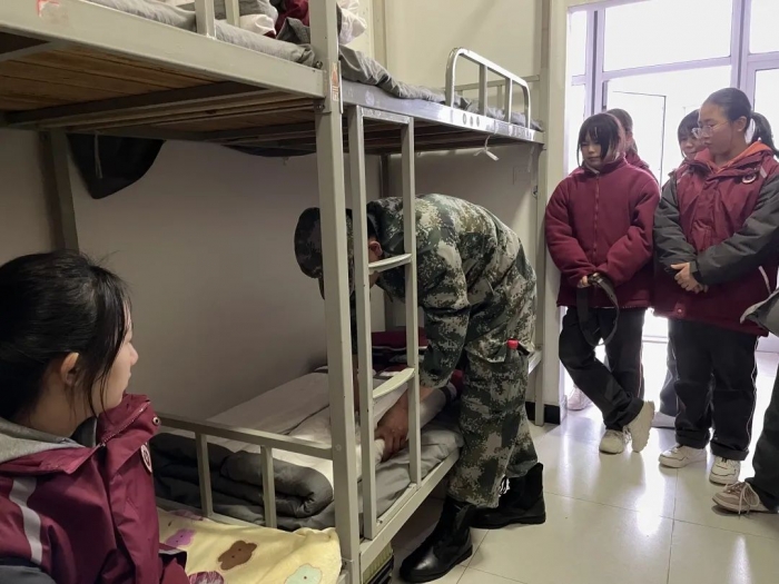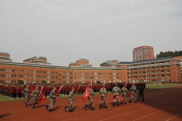 2月16至21日上午,宜昌天问高中高一年级学生举行了为期六天的冬季军事拓展训练。高一年级360名同学在教官的带领下,不知疲倦的训练着,严肃而认真。双手紧贴裤缝,双腿站直如松,双脚已把鞋子磨得凹陷,军姿依然是标准的60度。一周的训练中同学们还学习内务整理,提高了生活自理能力;行军礼、迈军步、唱军歌,听教官们讲述军营重动人的红色故事,感受到了团结奋斗、坚毅拼搏的力量,不仅意志得到了磨炼,也收获了属于自己的荣誉。在汇报表演后,年级组颁发了“优秀集体”、“优秀学员”、“优秀寝室”等奖项,有超过50位同学获得表彰。严整的队形、整齐的步伐、饱满的精神,响亮的口号,将天高学子高昂的斗志以及顽强拼搏的团队精神展现的淋漓尽致。