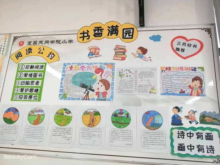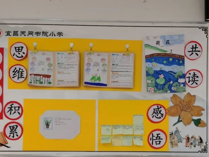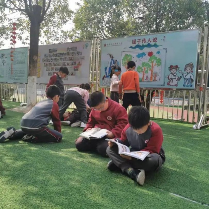走进天问书院小学,足球场边上的文化长墙是一组关于屈原品格的解读与故事,告诉人们书小将坚持传承中华经典文化;走廊里、楼梯间,随处可见小书宝的墨宝,有的在描写生动有趣的大自然,有的在感怀父母的养育之恩,还有的在倾诉阅读的快乐......日日浸润着孩子们的心灵;墙壁上的名人励志书画,时时陶冶着孩子们的情操。立体的画,无声的诗,孩子们置身其中,耳濡目染,时时感受到浓厚的读书氛围,处处溢满浓浓的书香气息。