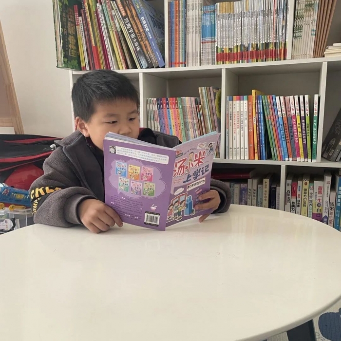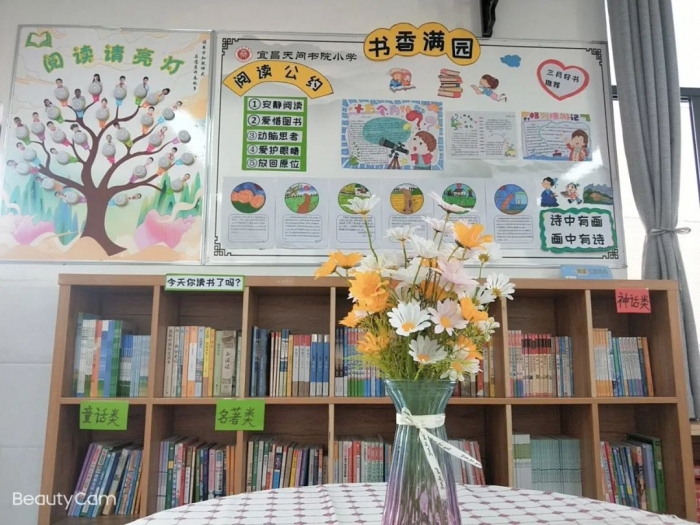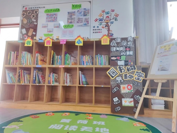 挑好书,随及坐下,闻着花香,就可以阅读自己喜欢的书籍了。一下课,天问书院小学101班的小书宝们就迫不及待的奔向了班级图书角。
