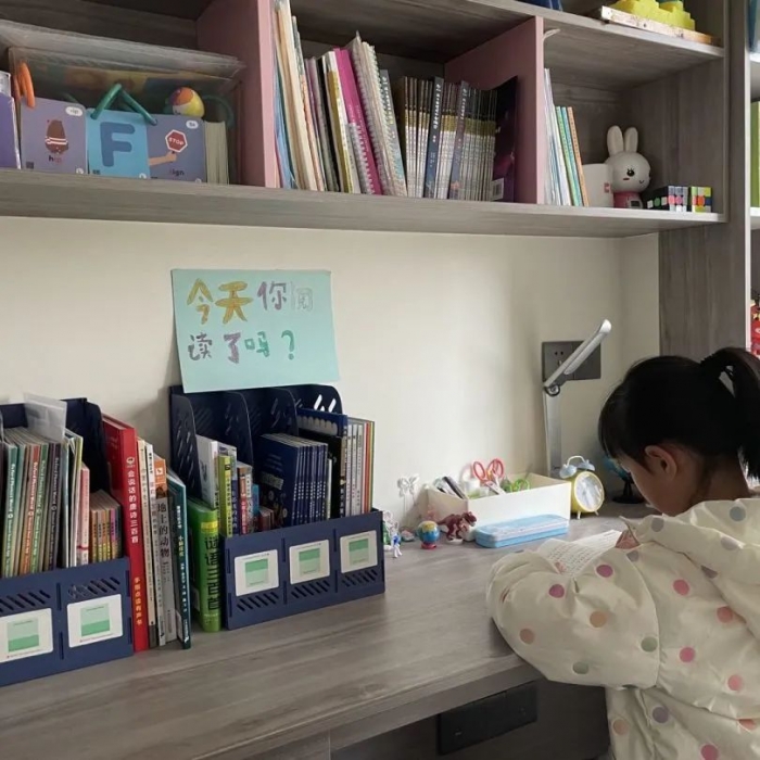 看,小书宝不是一个人在战斗!爸爸、妈妈、老师都非常支持我们。开学初,爸爸、妈妈就在老师的指导下,用书架、书桌、图书帮我建了“家庭书巢”。在爸爸妈妈的带领下,背一篇离骚,丘壑苍茫。诵一本诗经,唇齿留香。读一本杂志,周游世界。看一本历史,穿越古今。