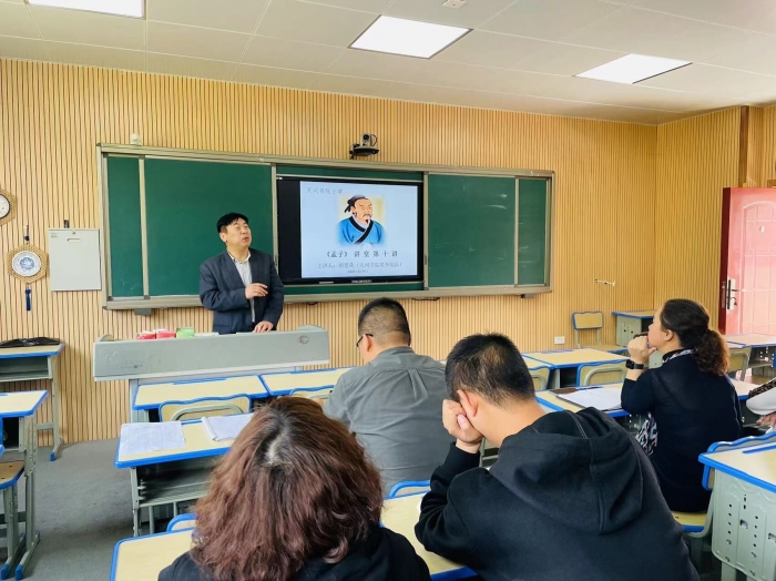 3月17日,天问书院顾景荣院长为书小全体教师进行孟子讲座第十讲。顾院长娓娓道来,现场各位教师聚精会神地聆听,认真地记录《孟子》精髓。