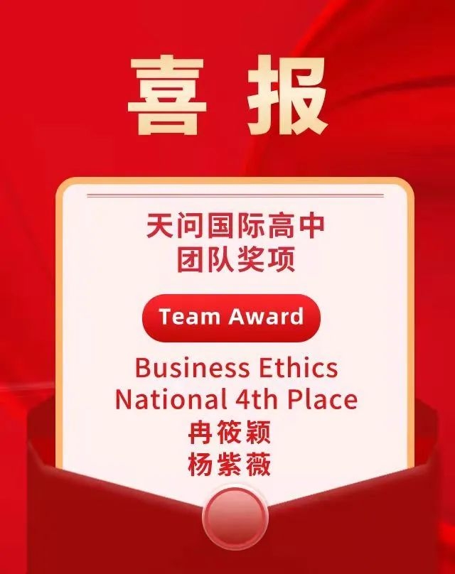 2022年2月25日,天问国高11名同学前往上海参加2022年FBLA美国未来商业领袖挑战赛,取得优异成绩,其中高二冉筱颖、杨紫薇同学荣获全国第4名!