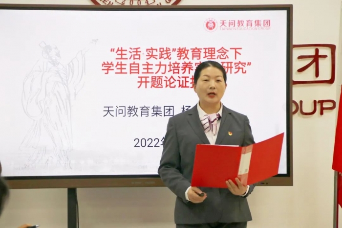 会议伊始,集团教学办副主任杨华梅回顾了天问教育集团的发展历程,介绍了天问教育集团现阶段基本情况,汇报了集团课题研究的背景和课题组前期准备情况。