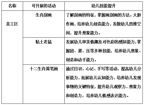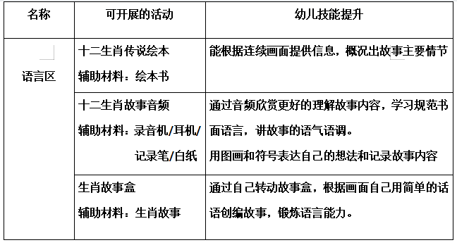 本月我们结合区域游戏,根据幼儿的兴趣特点,将“十二生肖”主题活动以多种方式的区域活动形式进行开展,在区域活动中丰富幼儿关于生肖的常识,引领幼儿了解十二生肖,让幼儿对传统文化产生兴趣,并且感受积极探索、参与活动的快乐,激发幼儿对中华民族传统文化的喜爱之情。