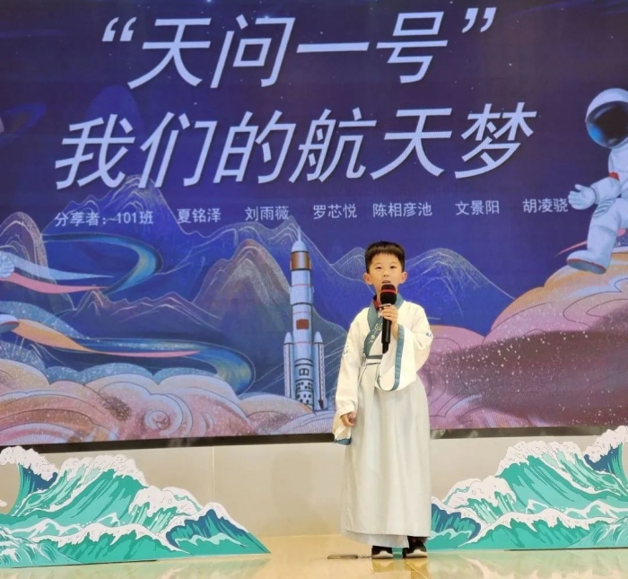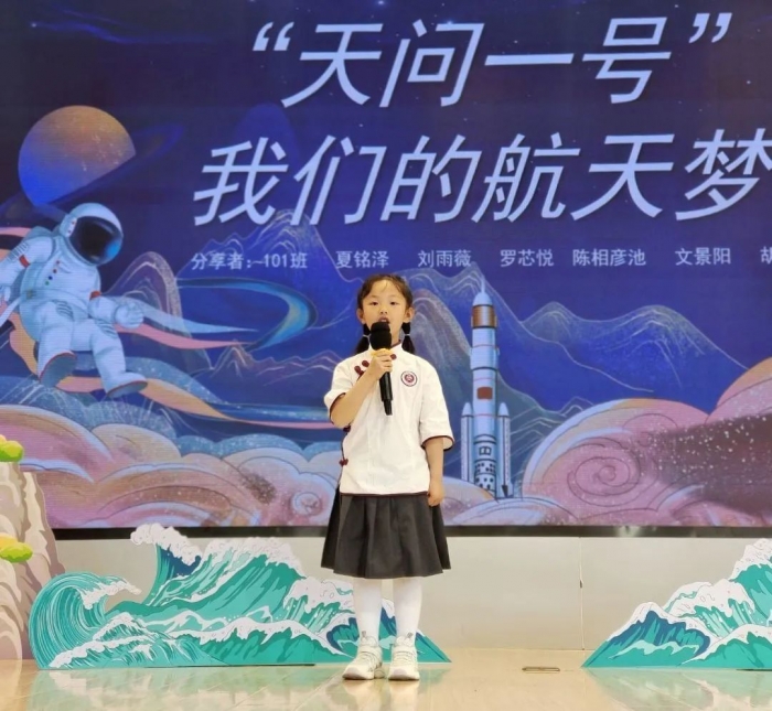 4月21日上午,低段的孩子们聚焦《天问》中的天文、地理等部分进行阅读分享,为梦想插上科技的翅膀。