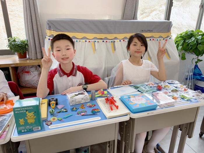 4月22日下午,天问书院小学各教室内人头攒动,叫卖声不绝于耳,俨然一副超市大型卖场的阵势,第三届读书节之跳蚤市场正式拉开帷幕。孩子们准备的图书、玩具、学习用品应有尽有,售卖声、讨价还价声,让整个跳蚤市场热闹非凡。