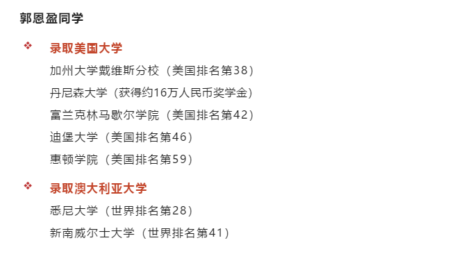 当拿到这份优秀的录取成绩单时,郭恩盈的父亲说:“非常开心,超出我们的期待”!