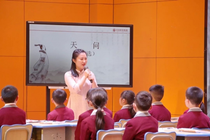 启动仪式上,高新天问小学校长胡菲现场执教了一堂别具特色的屈原文化课《天问》(节选),从校徽寓意导入屈原名篇《天问》,通过激情诵读与合作探究,了解屈原渊博知识和求索精神,通过吟唱将美育与文学融合,并进行科学素养拓展,将屈原求索精神根植学生心田。课前三分钟,孩子们屈原名句对答如流;课堂中,问天问地思维碰撞,充分展现了天问孩子的综合素养。