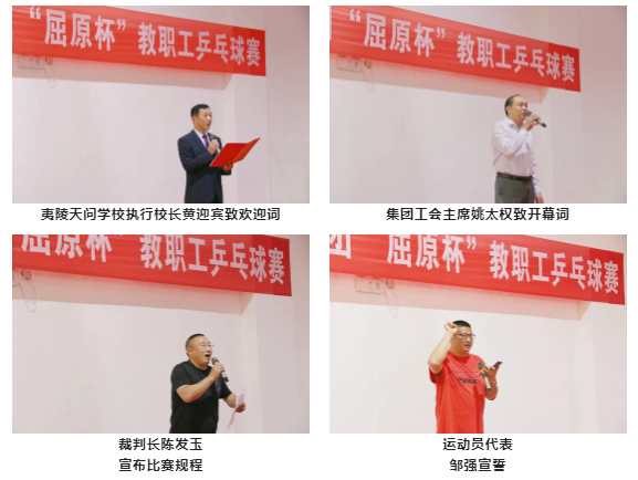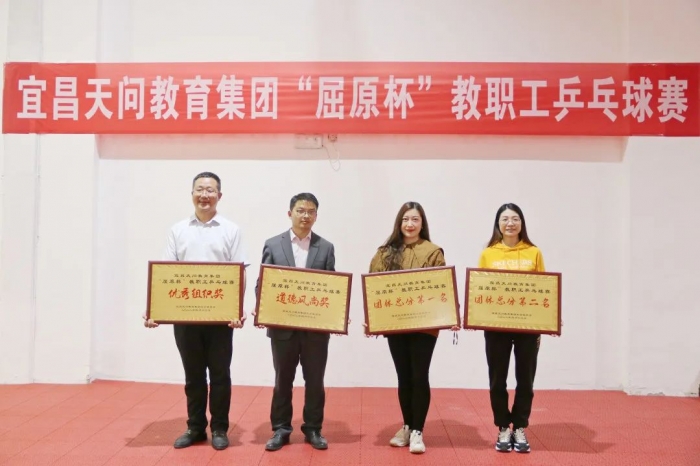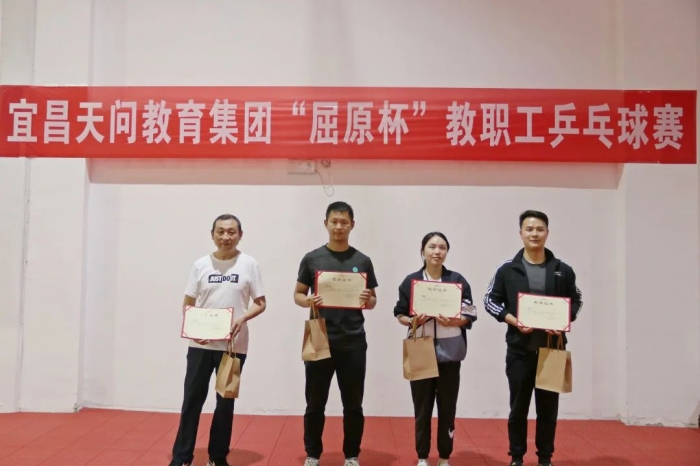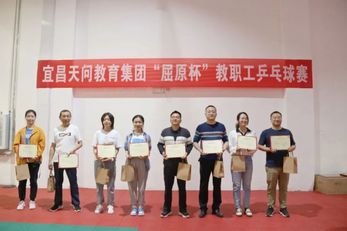 为了深入挖掘并弘扬屈原精神内涵,传承博大精深的屈原文化,丰富集团教职工课余生活,增进各校区教师友谊。4 月 13 日下午,天问教育集团工会举行了“屈原杯”教职工乒乓球运动会。