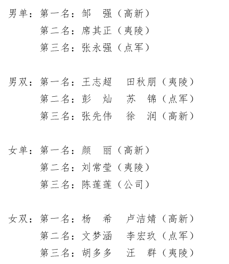 涌现出了颜丽、邹强等二十四名优秀运动员,张永强、刘飞等优秀裁判员,高新天问等四个优秀团队。
