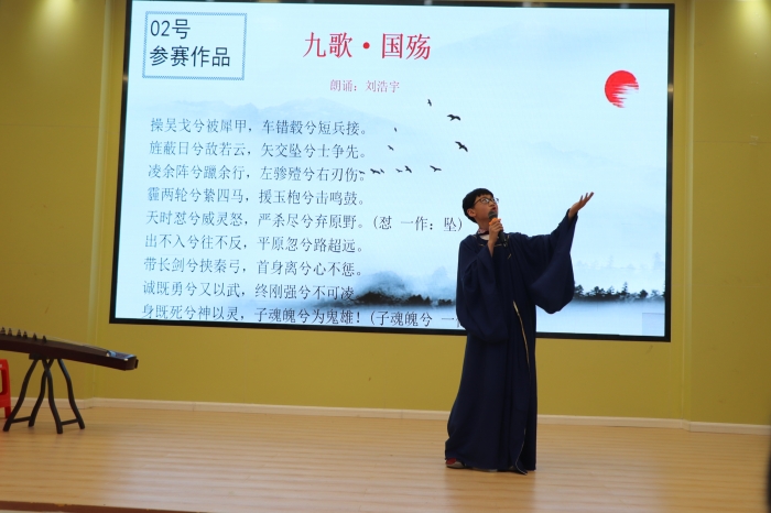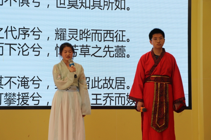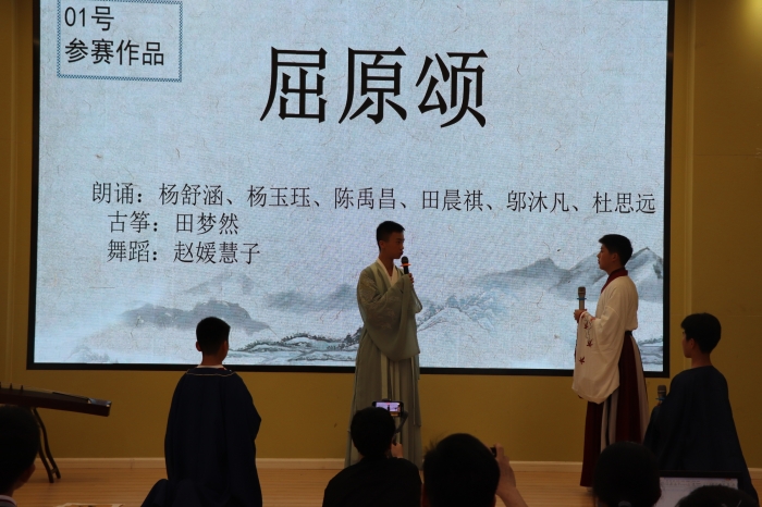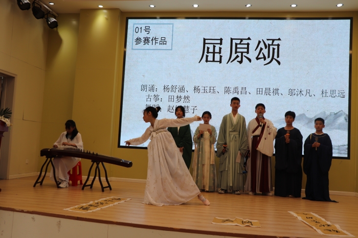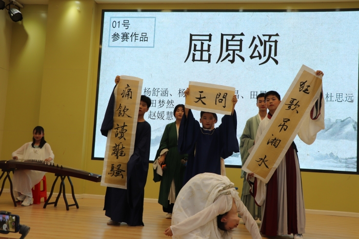 同学们积极踊跃参加,现场气氛活跃。有背诵《天问》的,有吟诵屈原作品的,有演绎屈原故事的.......内容丰富,形式多样。