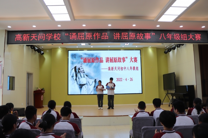 为进一步加强天问学子深入了解屈原其人其事,增强对屈原作品的理解,提高对屈原精神的认识,通过本次活动,提高学生对语言的感受能力,表达能力,丰富校园文化内涵。4月25日-26日我校七八年级分别举行了“诵读屈原作品,讲述屈原故事”的活动。