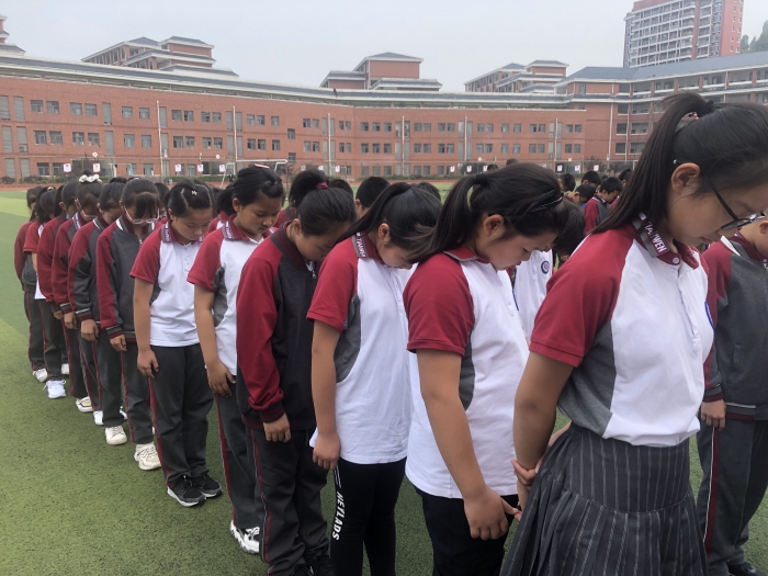 最后全体师生为14年前遇难的近7万人默哀一分钟。