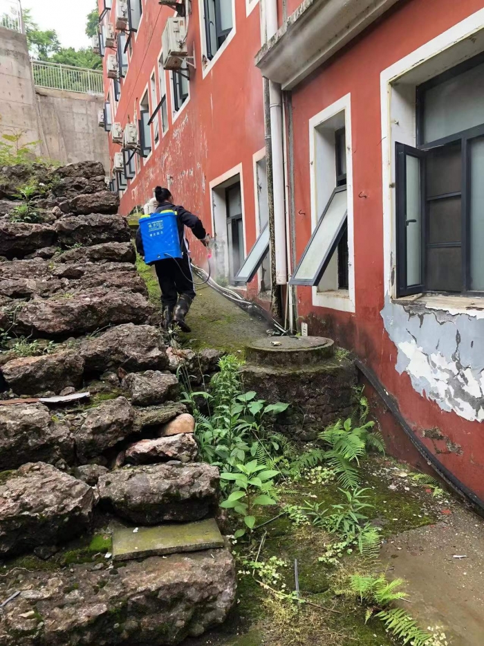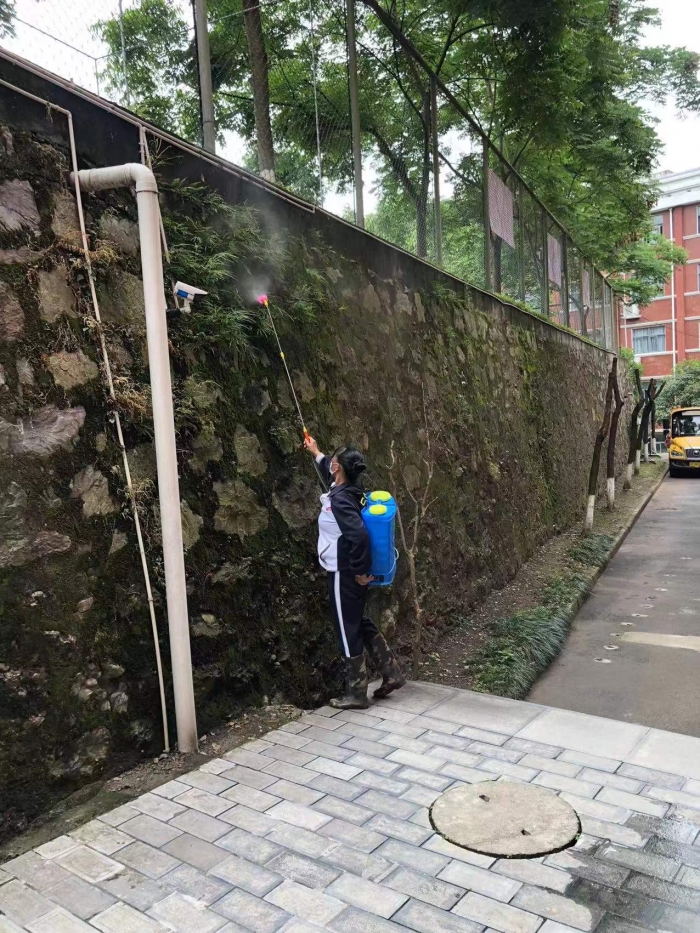 随着夏季的到来,蚊虫日渐增多。为了巩固校园绿化成果,为师生提供温馨、舒适的良好校园环境,天问书院小学后勤中心组织生活老师老师在5月20日(星期五)学生放学后,对全校范围内分区域进行蚊虫药物消杀,对校园所有花草树木喷洒除虫剂。