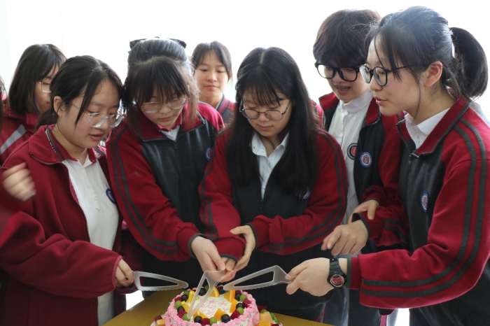 为了鼓舞士气,缓解压力,让同学们以更昂扬的状态走向考场,学校在开考当天举行“开考仪式”,同学们分享“逢考必过”蛋糕,老师们一一送上考前祝福,希望同学们不负青春,努力“向着A*冲刺”!