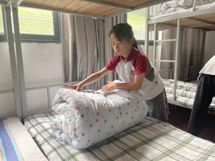 每个年级的比赛项目不一,叠衣服、系鞋带、戴红领巾、收拾抽屉、炒菜等等。