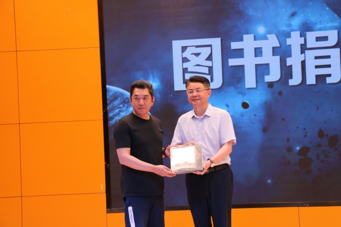 书籍是人类进步的阶梯。讲座开始前,崔峻教授向天问图书馆捐赠图书。