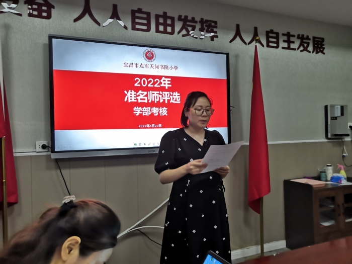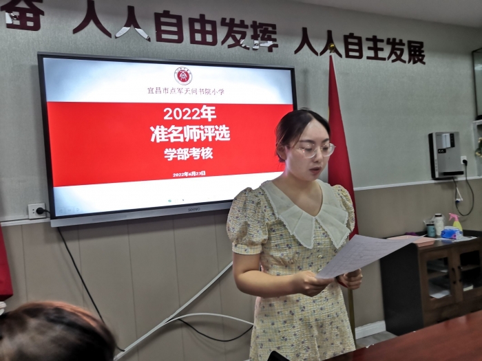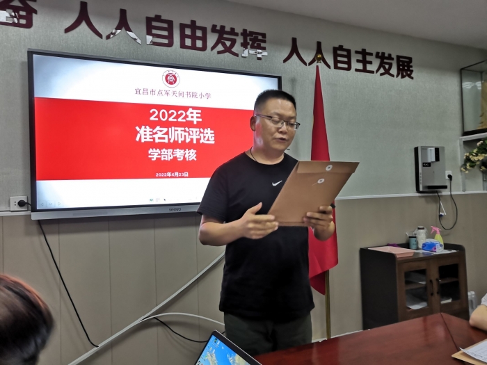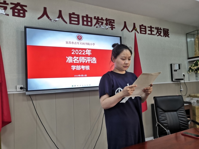 6月23日,天问书院小学进行了天问教育集团2022年天问准名师评选学部考核活动,评委有校长袁霖淋、党支部书记韩亚飞以及各科室主任。在校务中心周茜主任的组织下,参加评选的老师精心准备,认真发言,评委们现场打分,活动圆满结束。