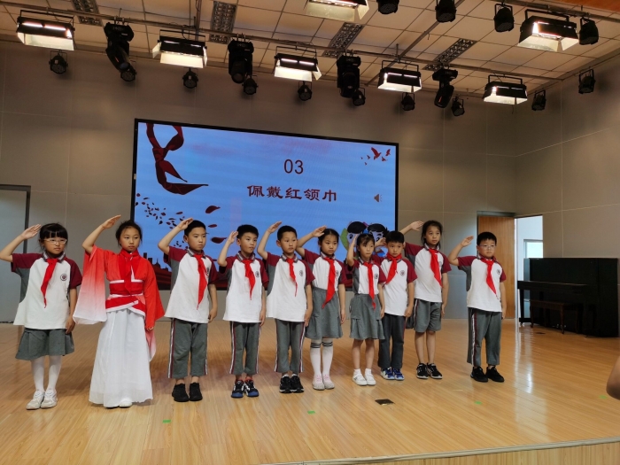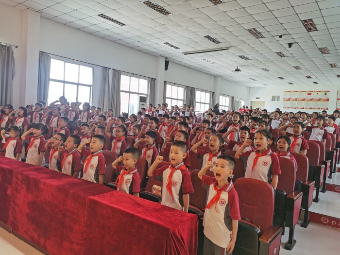 “我们是共产主义接班人,继承革命先辈的光荣传统……”伴随着熟悉的旋律,孩子们激动地唱起了《中国少年先锋队队歌》。歌声嘹亮,荡气回肠!在催人奋进的歌声中,一二年级全体学生光荣地加入了中国少年先锋队,成为了一名少先队员。