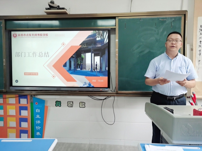 7月5日下午,天问书院小学在会议厅召开了各部门总结大会。各部门负责人围绕本学期开展的工作进行了深入系统的分析和讲述,全面充分地展示了本年级的工作成效与亮点,博得了与会老师们的肯定和赞誉。