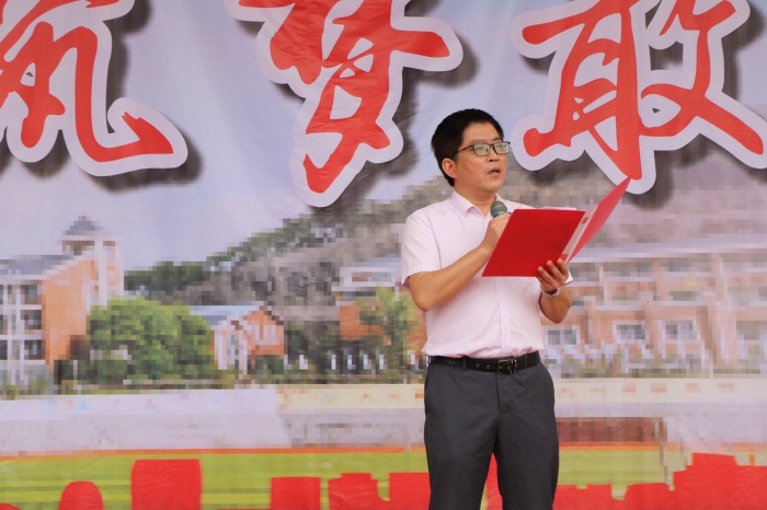 九年级郭均波老师作为教师代表发言。他对各年级同学提出了不同的希望。希望九年级的同学,刻苦学习,勇于拼搏,握好光阴,做出表率;希望八年级的同学,再接再厉,努力拼搏,为明天的成才打好基础;希望七年级的同学,积极向上,做一名儒雅的学生。