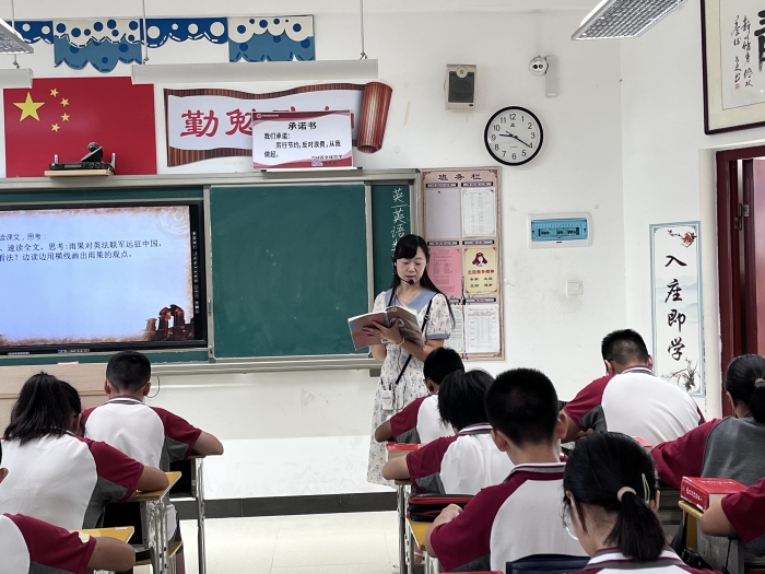 第二节课,904班甄运丽老师执教九年级课文《就英法联军远征中国致巴特勒上尉的信》。甄老师循循善诱,抓住文章结构,紧扣议论文学习特性,注重对作者观点的把握,从字里行间感悟作者情感。