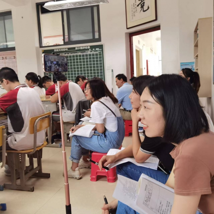 天问教育集团特聘专家、湖北省语文特级教师、中学正高三级教师李祖贵指导教师专业成长。此次授课的教师是姚海洋老师和甄运丽老师,授课、评课过程全程直播,集团三校教师共同参与“云教研”,互相促进,一起进步。