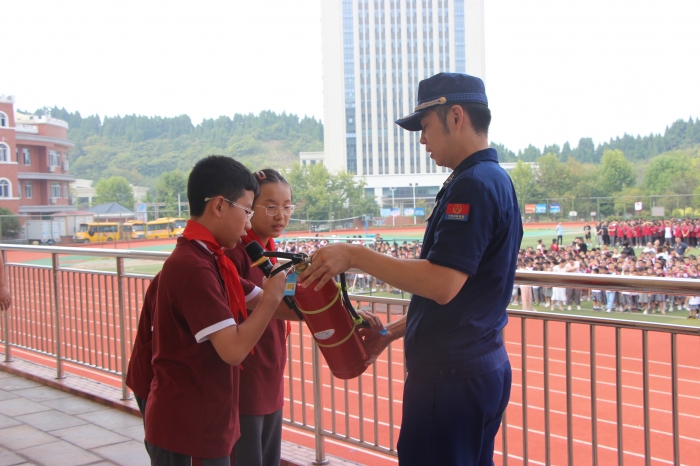 安全警报响起,全校近3000名师生从教室安全撤离至操场等空旷区域。大家抱头弯腰,以最快的速度进行了转移撤离。随后,夷陵区消防大队王舟参谋长来校对此次消防疏散演练进行了指导,并为同学们讲解了相关逃生常识,现场示范了灭火器的使用方法。