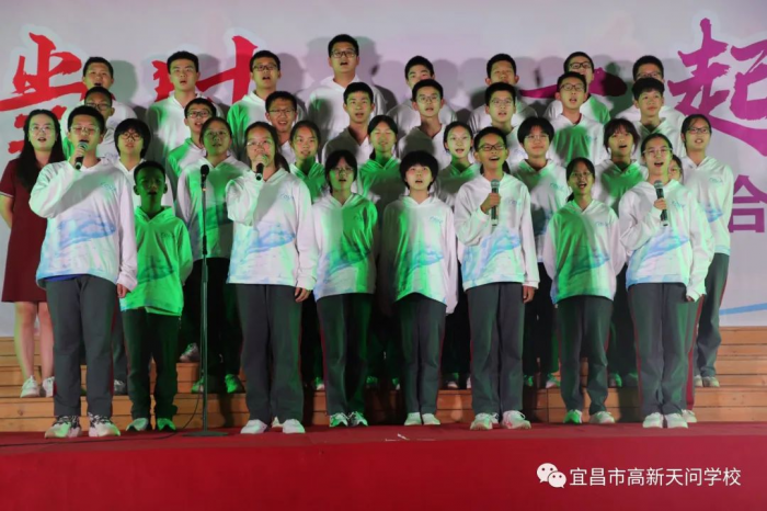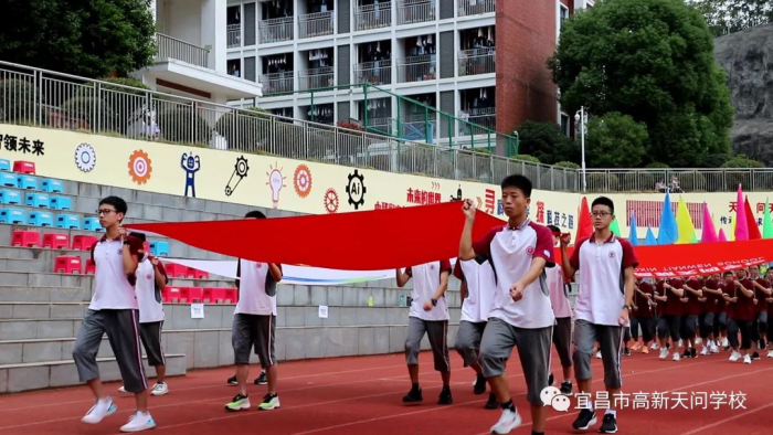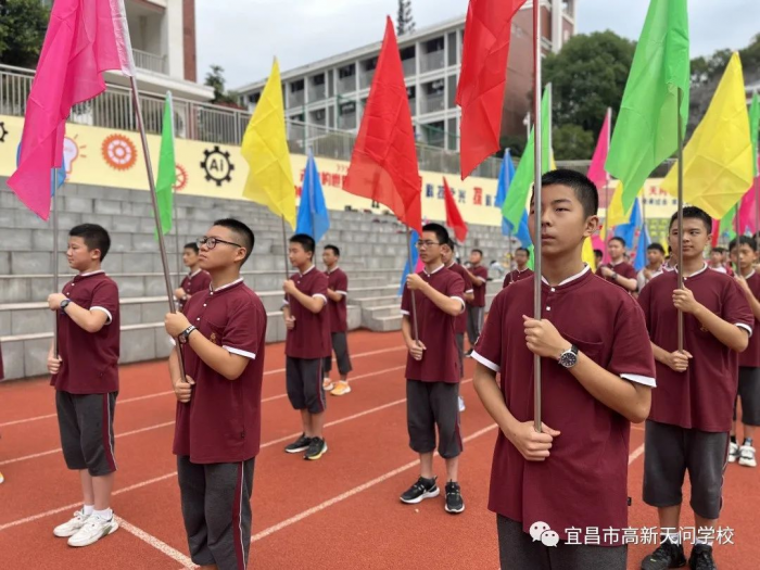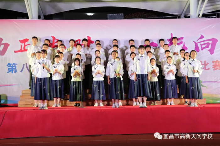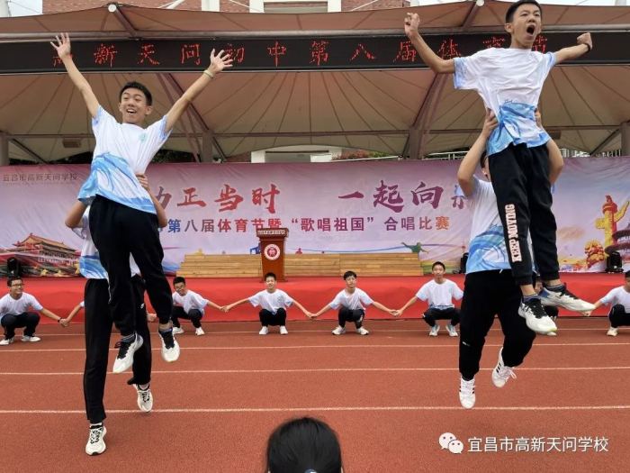高新天问初中第八届体育节暨“歌唱祖国”合唱比赛在学校操场盛大开幕。