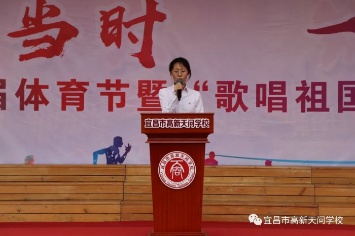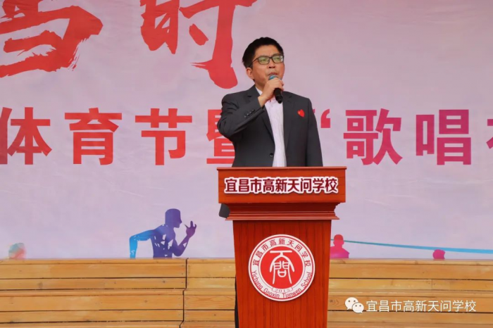段永红校长宣布,高新天问初中第八届体育节正式开幕。