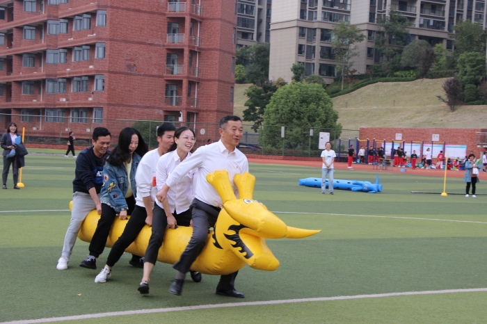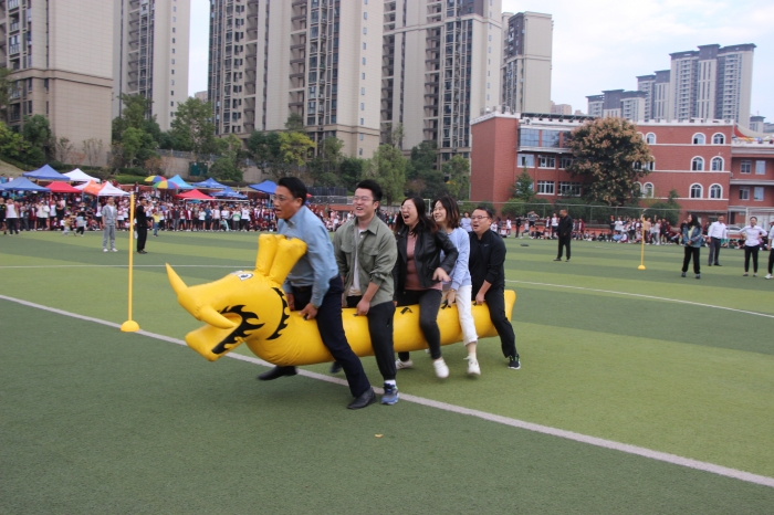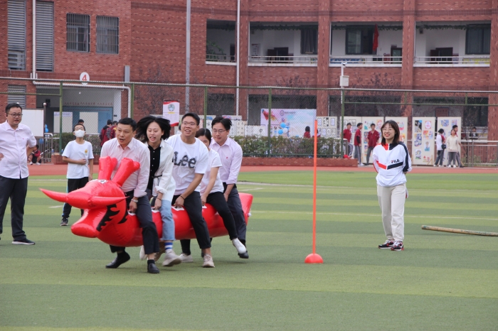 趣味运动会以年级组为单位,进行了竹竿跑、旱地龙舟和4乘100米的接力等三个项目的角逐。教师比赛项目不仅让老师们在运动中展现出青春活力,更是掀起了整个赛场的高潮,比赛在全体学生的加油和欢呼声中圆满完成。