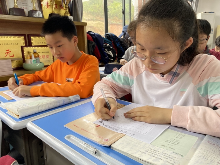 10月24日中午,天问书院小学举行了以”诗词歌赋 翰墨飘香“书法竞赛。随着铃声响起,同学们将准备好的纸笔整齐的摆放在桌面上,严阵以待。