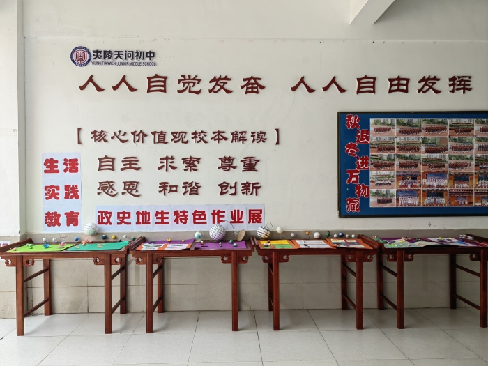 近日,夷陵天问初中进行了政史地生特色作业展,顺应“双减”政策要求、培养学生动手实践能力、践行跨学科教学的特色作业,给人耳目一新的感觉,吸引了同学们的眼球。