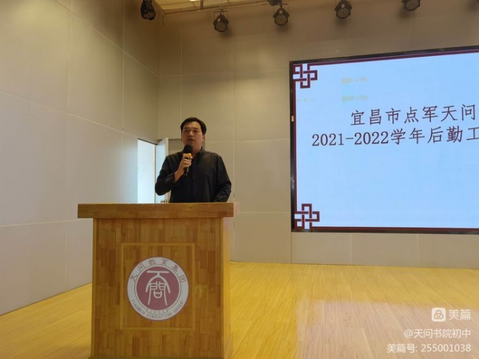 大会最后,点军天问书院初中彭灿校长在总结讲话中代表学校感谢后勤全体同志一年来的付出,并对获奖单位和先进个人表示祝贺。随后,他对下一学年学校后勤工作重点和发展方向作了要求。他强调,后勤人为师生服务的理念不变,后勤服务育人、环境育人的宗旨不变,后勤外树形象、内暖人心的原则不变,建设清洁校园、温馨校园、安全校园的奋斗目标不变,后勤的担当、奉献的文化内核不变,后勤人要继续“担当起我们应该负的责任和使命,奉献出我们自己的聪明才智。”