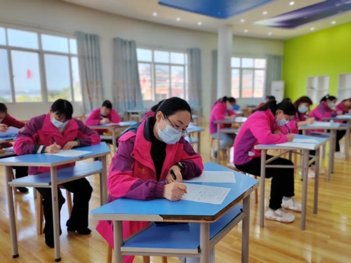 理论知识考核采取闭卷答题的方式,考试内容包含了保育教师一日常规工作流程中的工作重点、物体表面消毒方法、消毒片的配比浓度、预防疾病关键的“十五个”字以及预防诺如病毒、呕吐物的处理等问题。