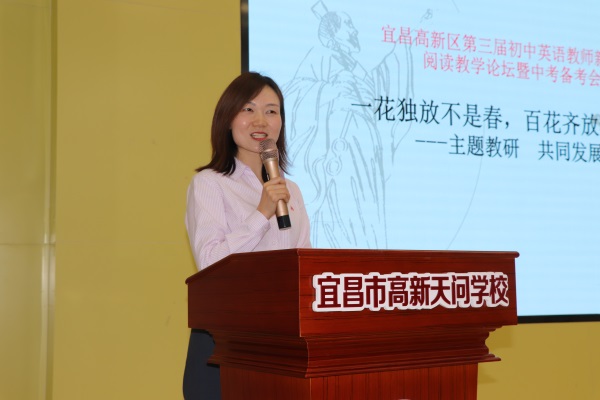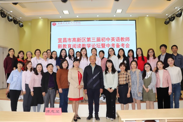 本网讯(通讯员周玉玲裴燕妮)4月17日下午,高新区第三届初中英语教师新教育阅读教学论坛暨中考备考会在高新天问学校顺利召开。宜昌市初中英语教研员徐启富和高新区初中英语教研员谭志坚出席了本次备考会,高新区初中英语全体教师与会到场。