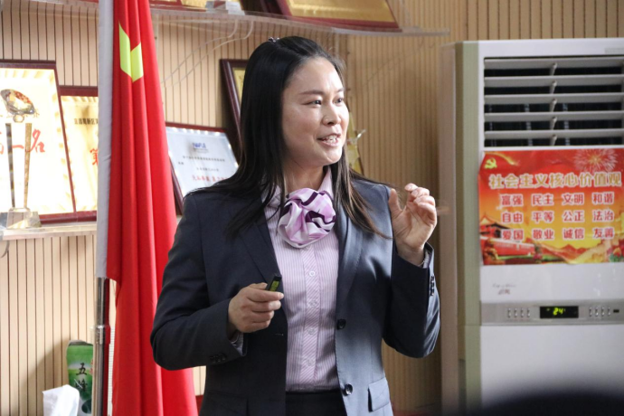 胡菲校长为参观团队介绍新小特色:做科学服务,建pdca模式,立育人核心,促全面发展,使作业提质,设多元课程,供菜单服务,自主选择,让学生学有所获,日有所长。
