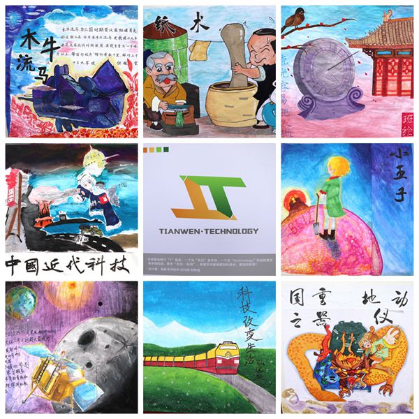 开幕式上,以“科技”为主题的展板竞相亮相。其中,七年级展示了我国古代影响深远的科技发明,如日晷、木牛流马、造纸术、地动仪;八年级展示了我国近代科技在交通运输、航空航天、军事武器装备等领域的创举;九年级展示了当下的“天眼”——卫星导航、嫦娥四号探测器和对未来5G时代的科技展望。