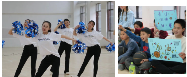 比赛间隙,天问教育的老师们及天问书小的孩子们以灿烂的笑颜、活力的舞姿为比赛助力。