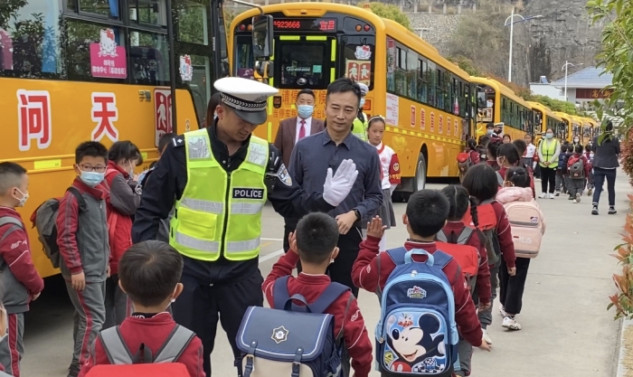 2023年3月27日,由宜昌高新区文明办、宜昌高新区新时代文明实践中心、宜昌高新区管委会教育局、宜昌市公安局交通警察支队高新区大队主办的全国中小学生安全教育日“知危险 会避险 ”的直播活动在高新天问学校顺利举行。天问少年交警队在这一天正式上岗啦!