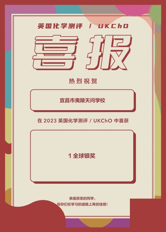 喜报!天问国际高中高二学子郭峻宏同学在2023年英国化学测评中荣获全球银奖!