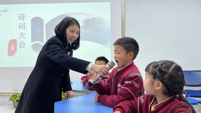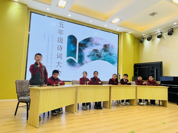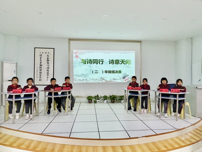 2023年4月23日下午,诗词挑战营正式开营! 自集团诗教活动开展以来,各班老师和学生认真备赛,积极参与,掀起一股诗词热。通过班级初赛,孩子们初展风采,各班选拔出两名同学参与年级复赛。八名选手通过积分淘汰赛最终选拔出三人夺得校级“诗词小当家”。