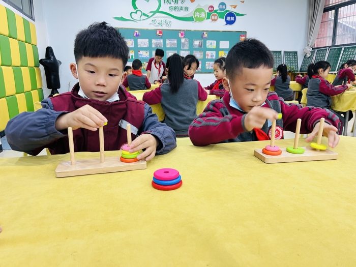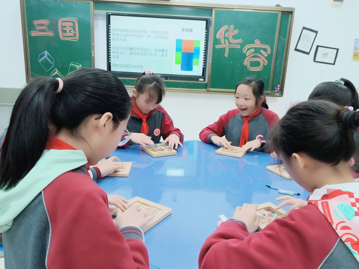 经过科学组与数学组前期精心的设计,本期思维欢乐谷开设了7大趣味场馆,有“来去自如”华容道、“独一无二”的数独、“变化万千”的魔尺、趣味烧脑的魔方、“环环相扣”的九连环、新鲜体验的汉诺塔、团队合作的七巧块。