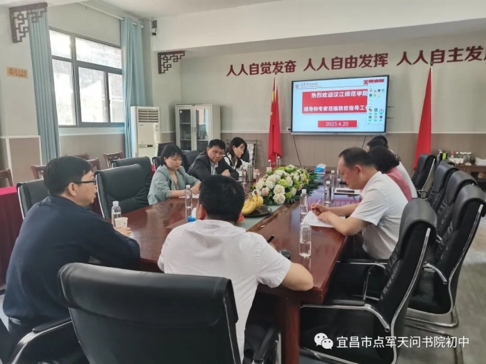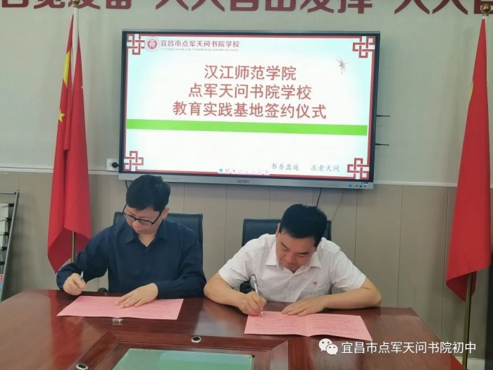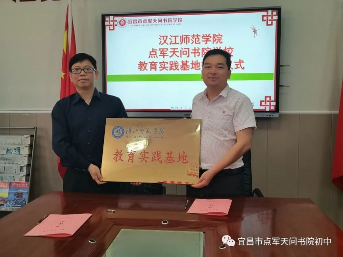 4月20日上午,汉江师范学院同我校共建教育实践基地授牌仪式在一楼会议室举行。汉江师范学院党委常委教务处处长王进、文旅学院院长饶军、党总支副书记周敏、学办主任曹扬、点军天问书院学校初中部执行校长彭灿、小学部执行校长袁霖淋以及学校部分中层干部出席了此次会议。