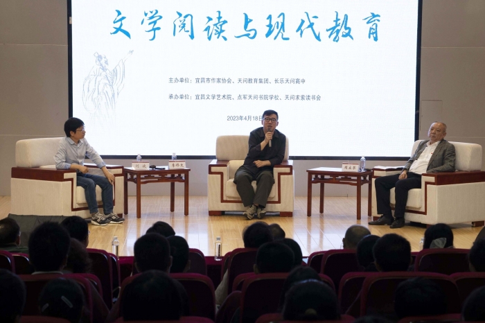 4月18日晚,以“文学阅读与现代教育”为主题的作家访谈活动在天问教育集团点军天问书院学校举行,著名作家、湖北省作协主席李修文,三峡大学文学与传媒学院院长、青年评论家、教授刘波,全国文化名家、宜昌市文联党组书记、宜昌市文联(作协)主席周立荣做客学校报告厅,为现场300多名点军天问学院学校师生及求索读书会会员、宜昌市作家代表带来了一场精彩的访谈对话。
