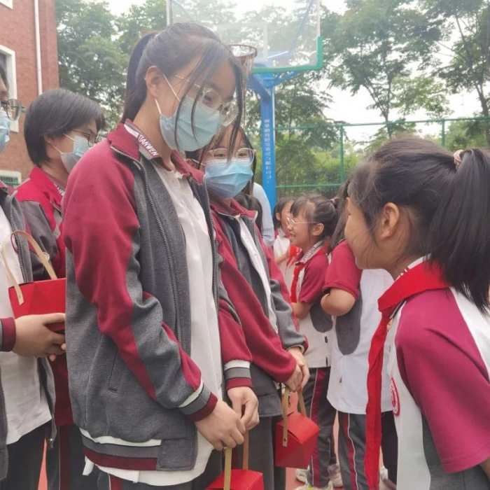 小小礼物,大大祝福。2023年5月24日上午,高新天问小学的小学生们在老师带领下,为初中部初三的学长学姐们送上祝福。祝愿他们展翅高飞,鹏程万里。
