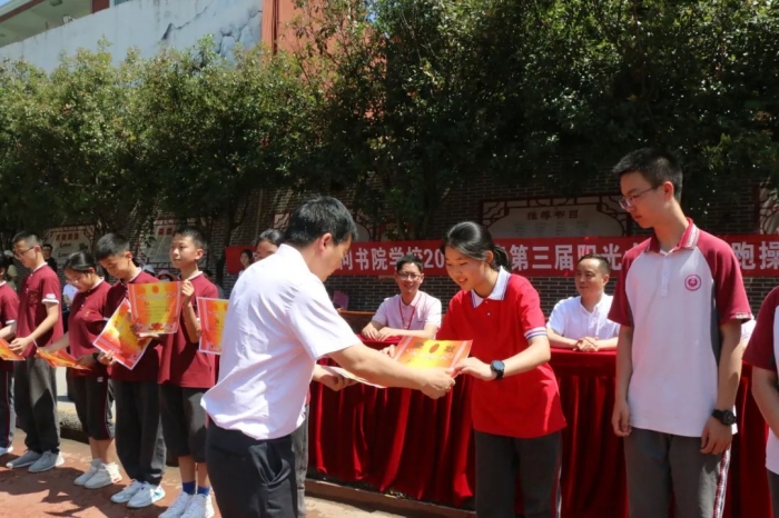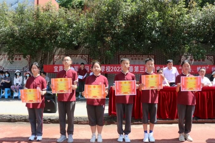 紧张激烈的比赛后,举行了颁奖仪式。校领导为获奖班级颁发奖状: