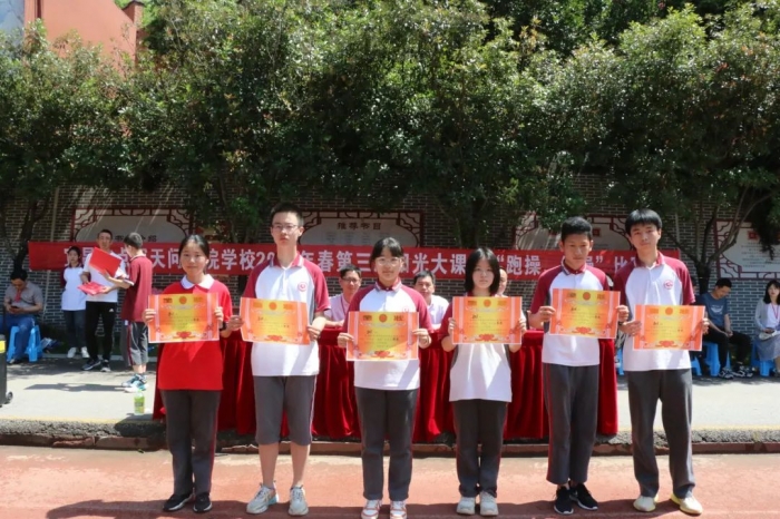 最后德育主任陈飞为本次的跑操、绳操比赛作总结讲话,他呼吁同学们要以此次比赛为契机,进一步提高认识、高度重视每一天的跑操与大课间训练。